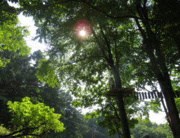 ツリートレッキングは木と木の間を細い板や、ロープや、はしごなどスリリングなところを通り進んでいくアスレチックで …